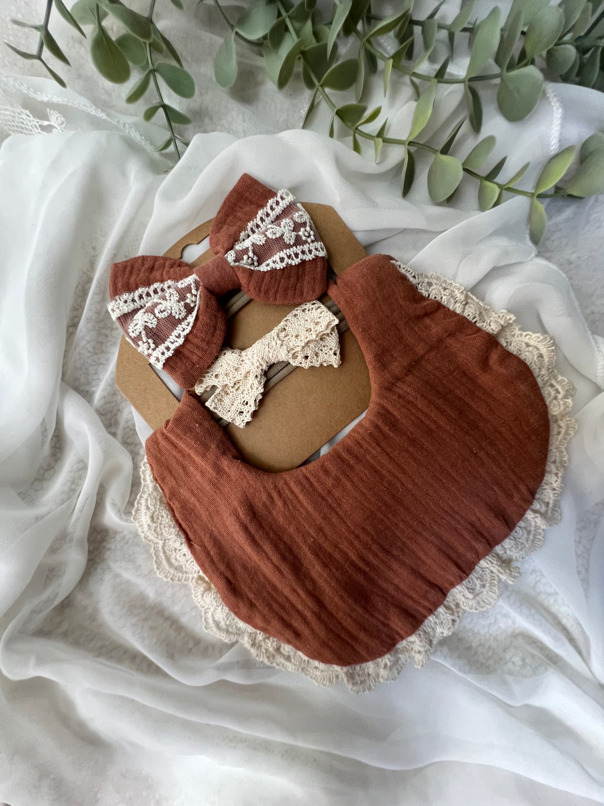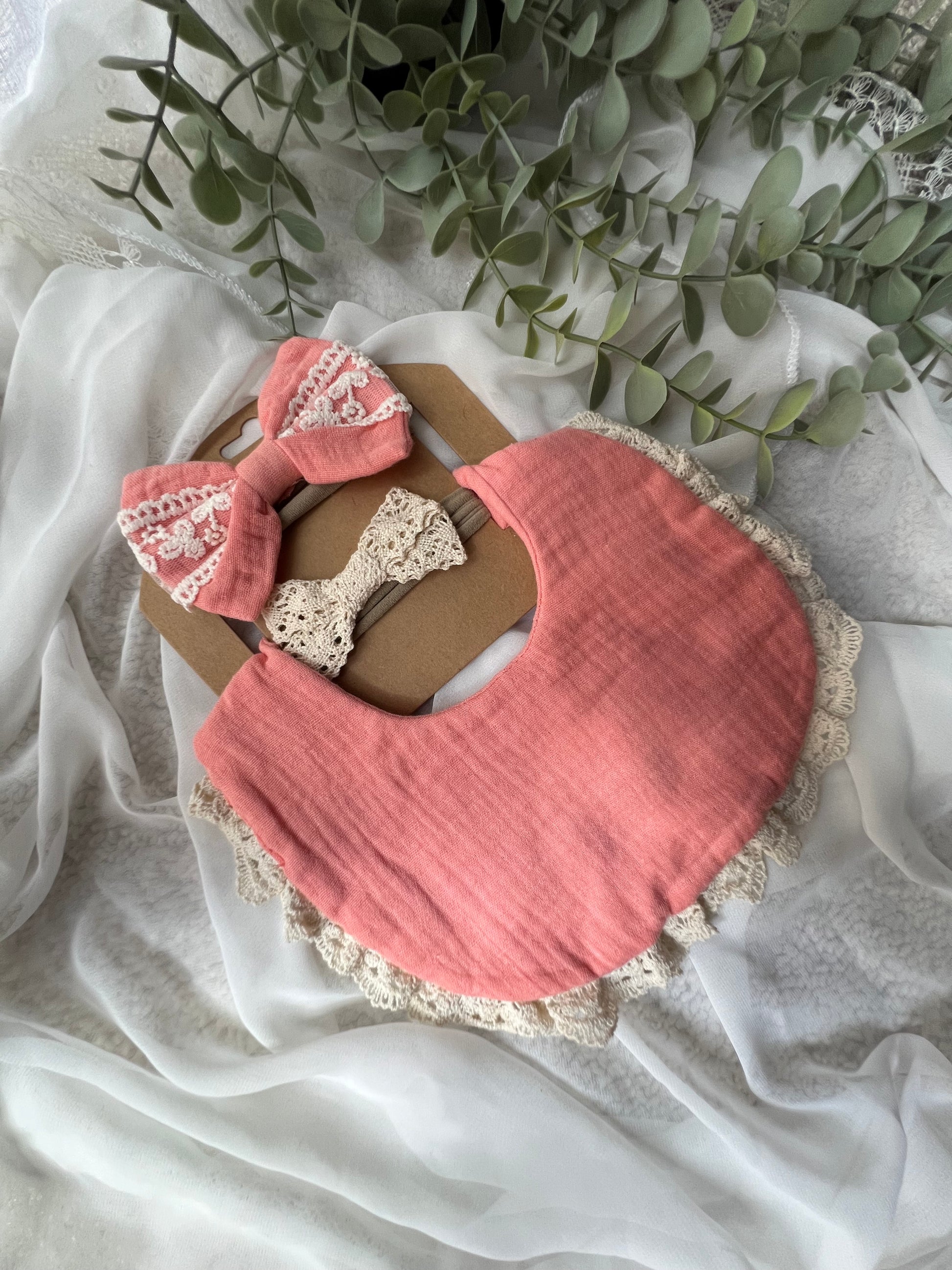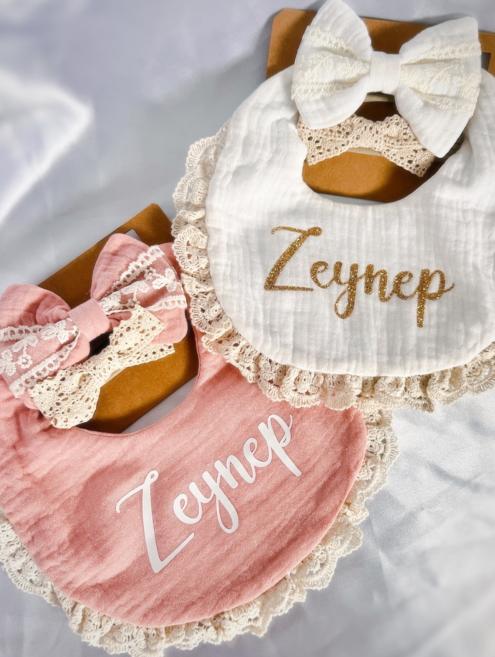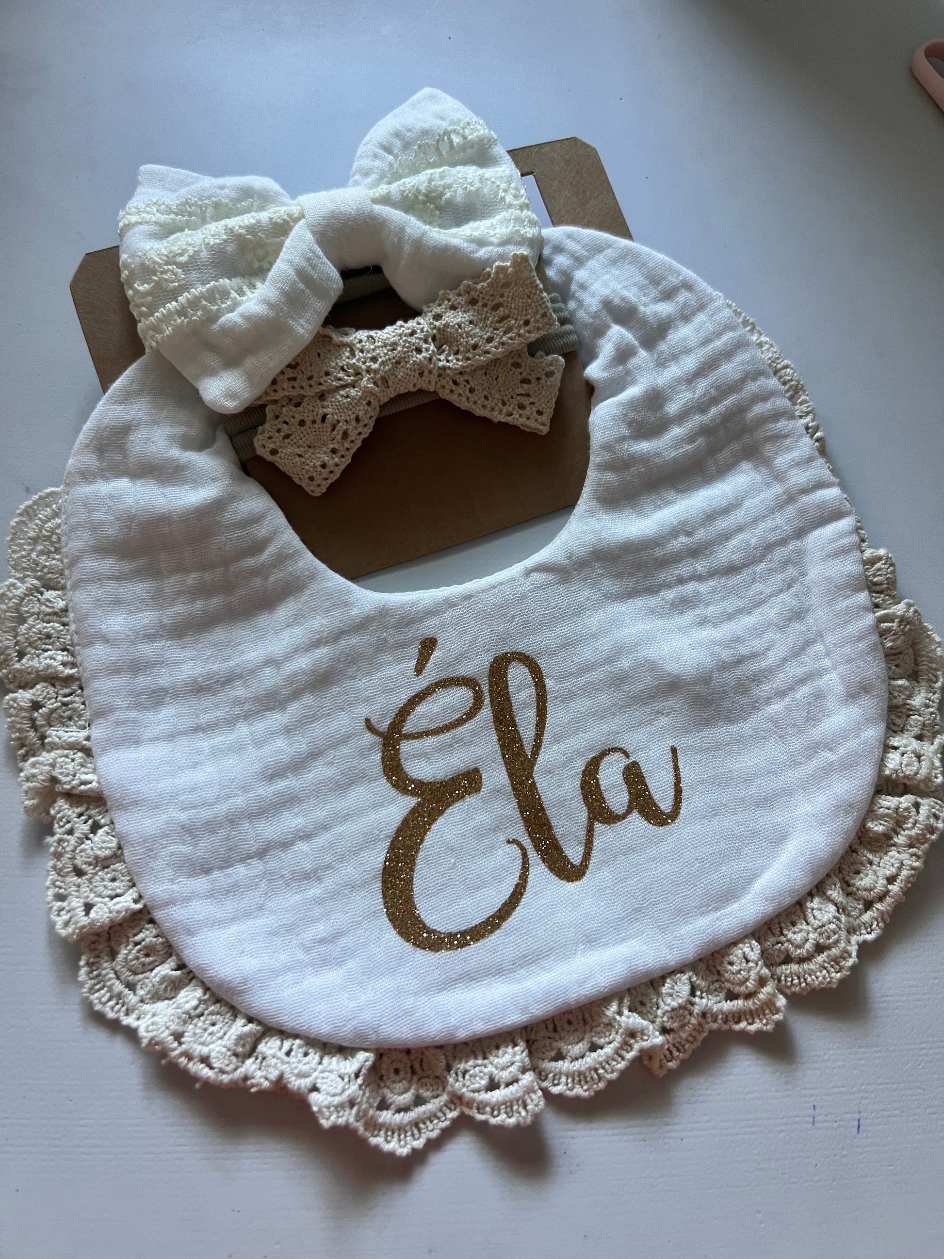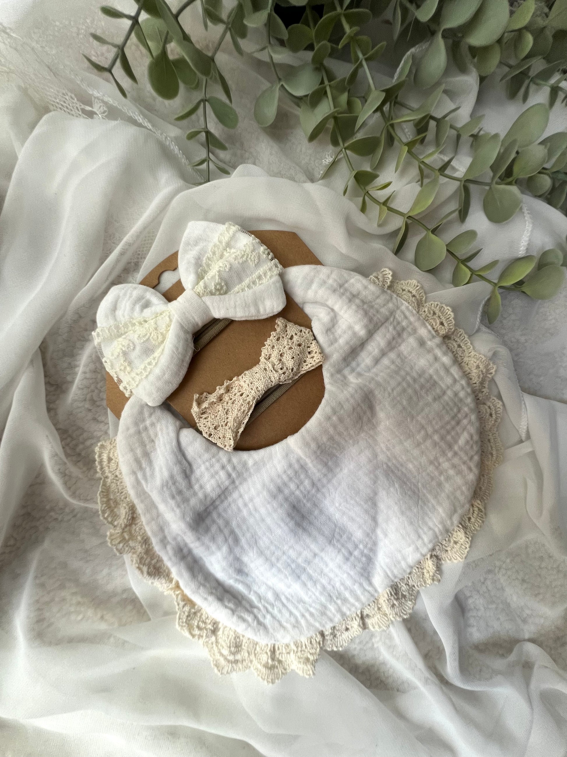 Bavoir à dentelle + 2 petits bandeaux assortis, pratique er adorable pour bébé !