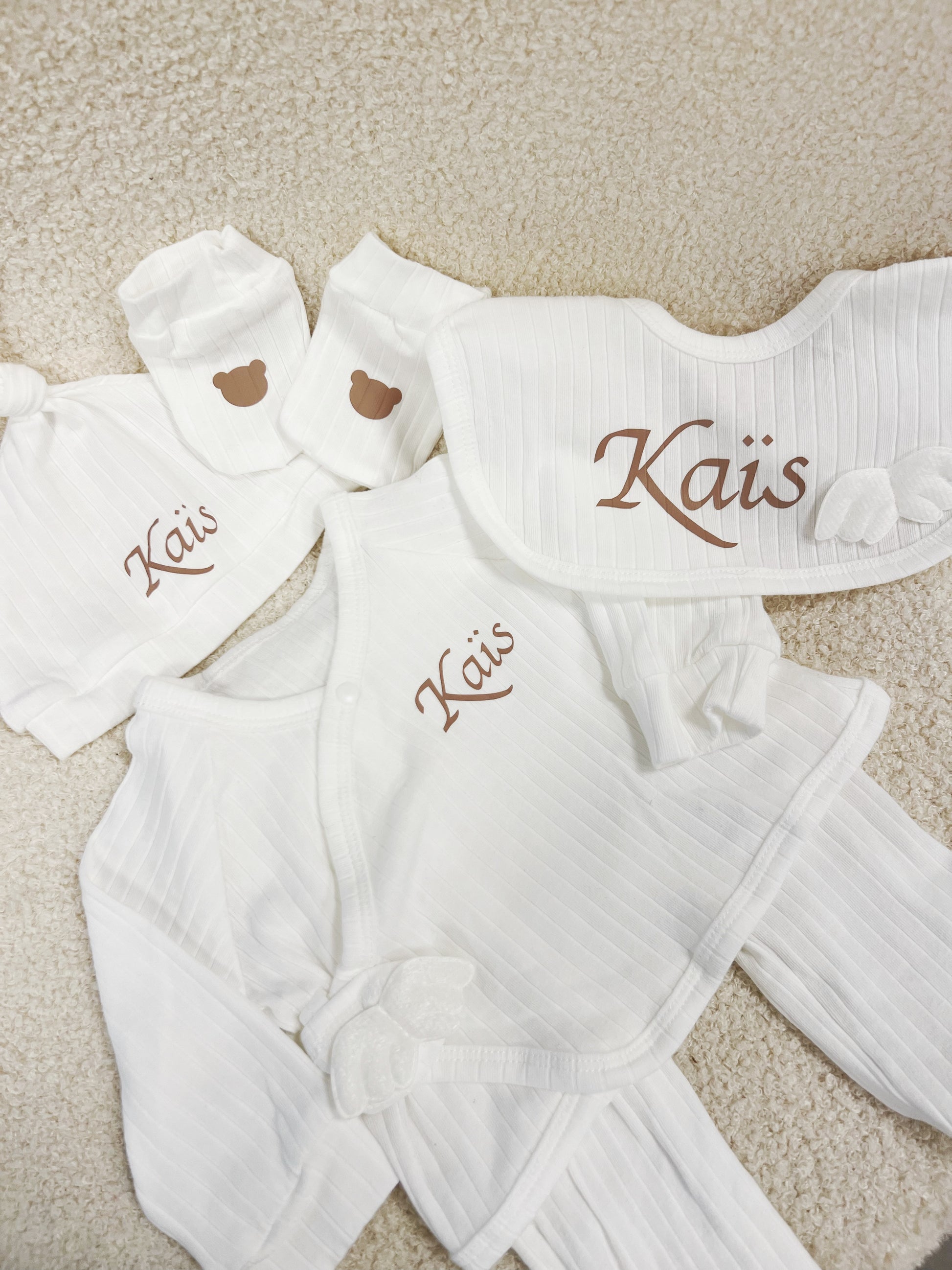 Adorable ensemble de naissance personnalisé avec soin pour accueillir bébé tout en douceur.