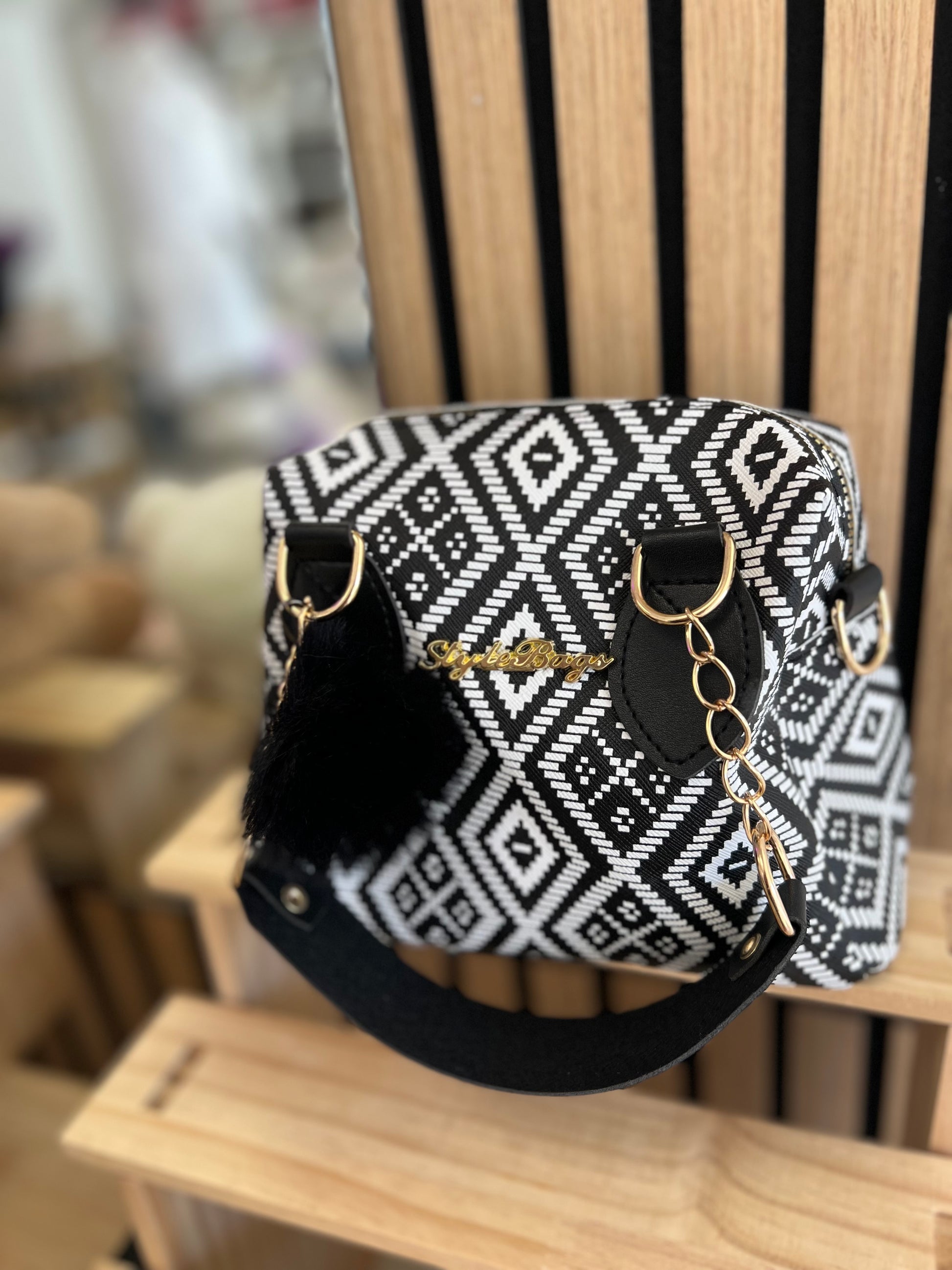 Sac élégant décoré d’un pompon, pour un look à la fois fun et sophistiqué. Vendu avec sa bandoulière.